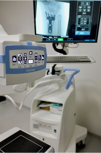 整形外科領域の手術において、骨を扱う際に必要なのがX線イメージです。当院では米ホロジック社製のフルオロスキャンを用いることにより、一般整形外科で用いる巨大なCアームでは見ることが困難な指骨の関節内骨折においても良好な整復操作を行うことを可能としています。