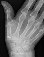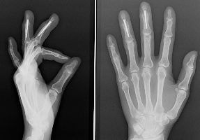 治療は、手指の安静が原則です。安静が保てれば、症状は自然に鎮静化することが多く、変形の急激な進行も予防できます。痛みが強い場合には、指の固定や関節内へのステロイド注入(当院ではおすすめしません)が行われる場合があります。変形が進行して、疼痛の強い関節、可動域が大きく損なわれた関節や高度に不安定な関節に対しては、症状を改善させるため、あるいは整容を目的として手術が行われることがあります。手術は、人工関節置換術を含めた関節形成術か関節固定術となります。