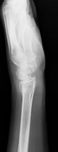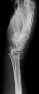 大きな変形を残して骨が癒合すると手関節の疼痛や手指の機能障害が残存したり、将来、二次性の変形性関節症を生じる原因となることがあります。骨の変形による症状を改善させるために、矯正手術(骨切術)が必要になることがあります。