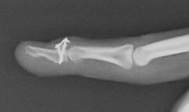 いずれの場合も、症状はDIP関節の自動伸展障害ですが、放置するとスワンネック変形(白鳥の首様の変形)を生じます。さらに、骨折の場合には早期にDIP関節の変形性関節症を生じる原因となることがあります。