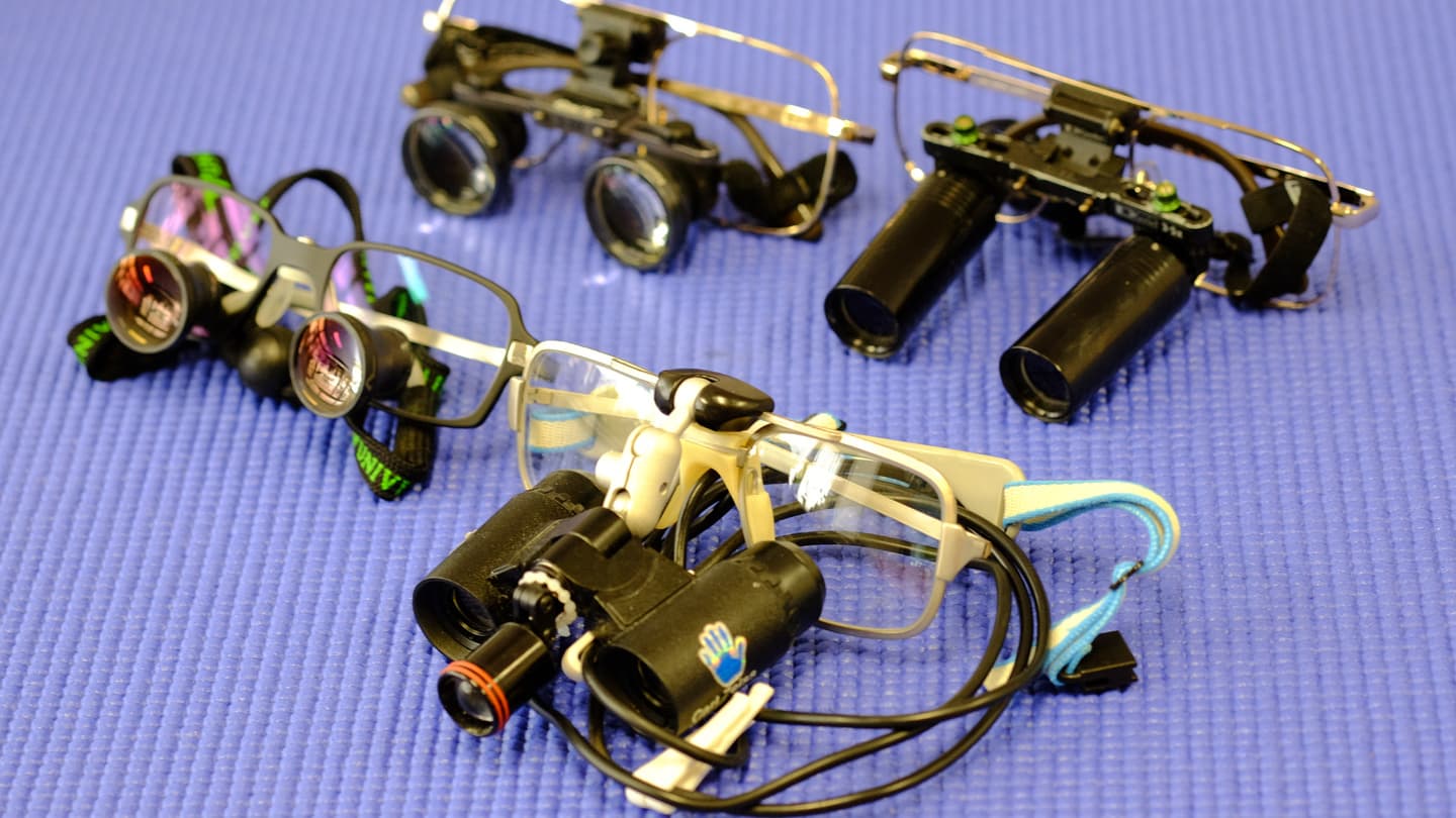 手術による生体組織への侵襲は、傷の治りはもちろんのこと、術後の機能の回復にも大きな影響を与えます。皮膚線に沿った必要最小限の皮膚切開と組織への侵襲を可能な限り抑えた手術手技は、良好な成績を生むことに直結します。それを可能としているのが、医療用の高倍率ルーペです。手外科医の多くは、このようなルーペを装着して手術を行なっています。このことははまた外科医の加齢に伴う視力の衰えをカバーすることにも役立ち、手外科医の現役寿命を長くすることにも貢献しています。